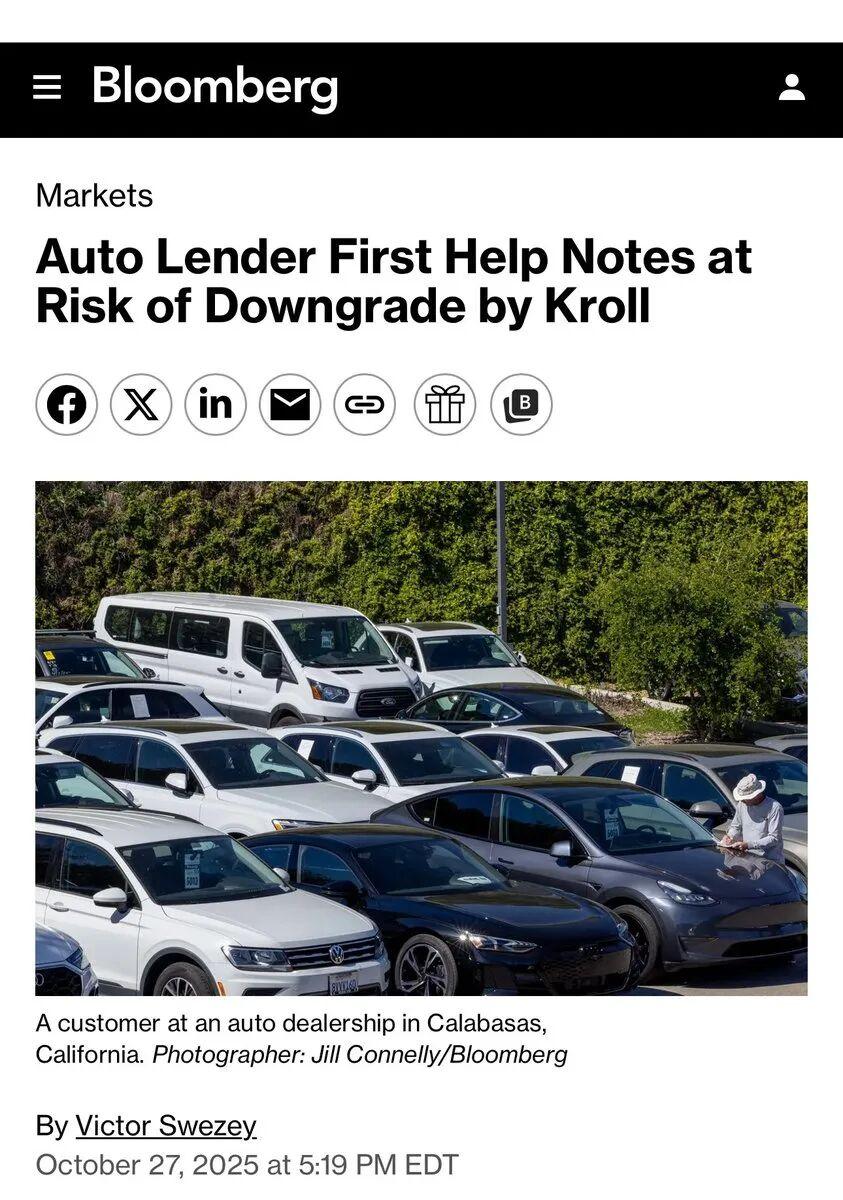 汽车贷款机构First Help Financial的四笔交易中,七类债券面临被Kroll债券评级公司下调评级的风险,原因是抵押组合中的损失不断累积。根据Kroll 近日发布的一份报告,来自该汽车贷款机构的这四笔交易的拖欠率高达6.69%,累计净亏损最高达5.56%。该报告将这些交易列为“下调观察名单”。据悉,First Help Financial与Tricolor一样,面向信用评分低于平均水平或中等的客户,并且经常向移民发放贷款。