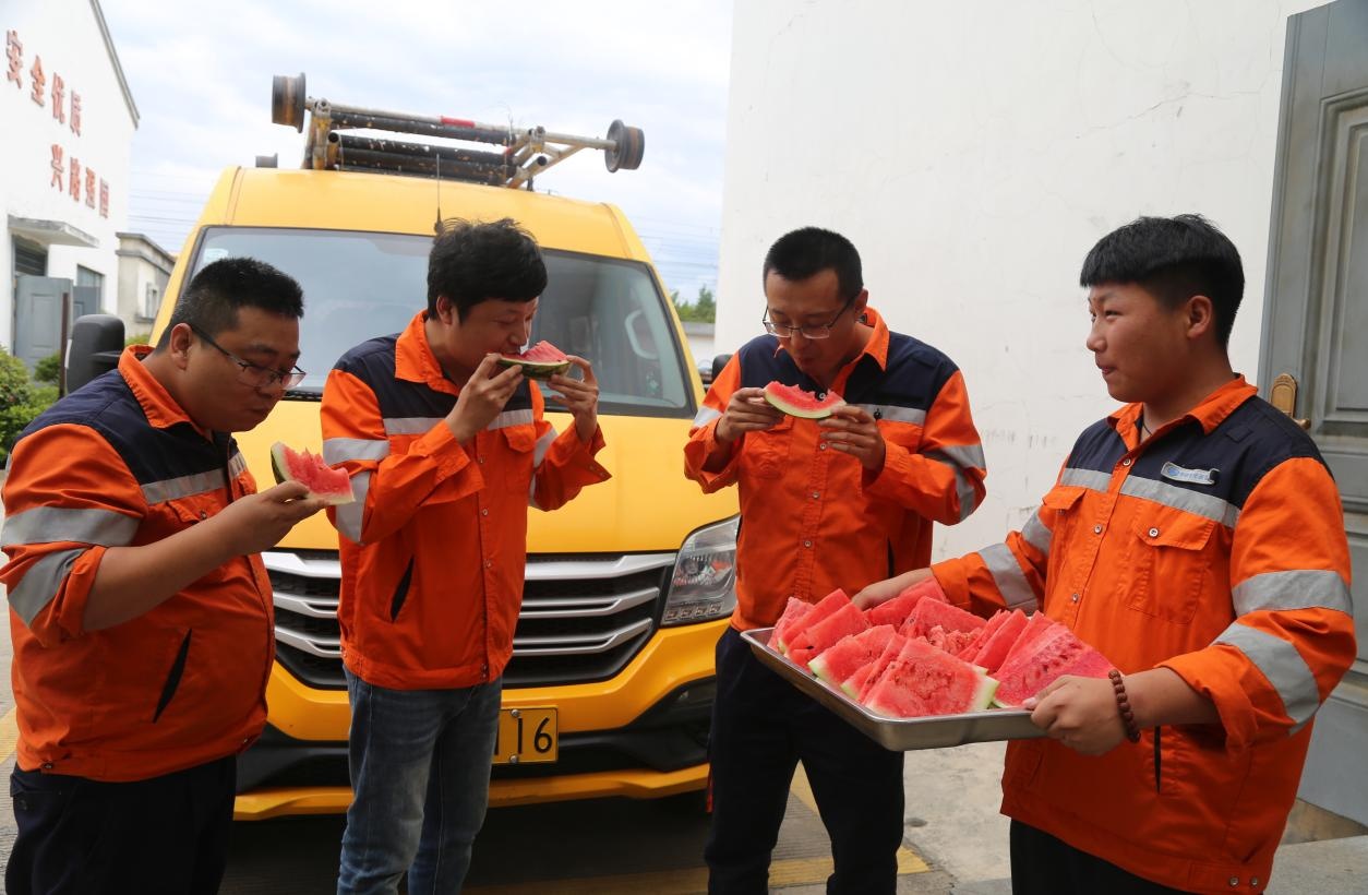 “大家快来,吃块西瓜降降温华夏配资门户,段工会给大家送清凉来啦!”常山工区副工长贾彬开心地喊道。“夏送清凉”活动走进衢九线常山供电工区时,正巧赶上员工们刚完成上午的设备巡检。