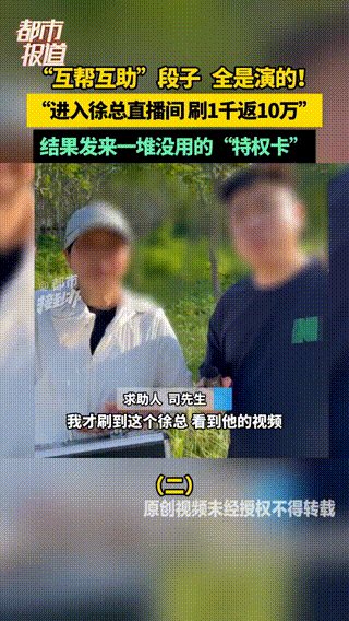 司先生说:“如果我有几百万几个亿,我也会帮助别人。”这让他坚信,“徐总”是个有钱的大好人,并对“徐总”的话深信不疑。随后,他被“徐总”邀请到直播间,刷1000返10万,刷3000返20万,以此类推。被“天降财富”砸晕的司先生借钱连刷了1万多,可收返现时却傻眼了,到手的竟然是一堆“特权卡”,说是能加油、看电影、点外卖、旅游出行,实际就是一张废纸,什么权益都享受不到!司先生说,转头讨说法时,大好人“徐总”却直接失联了。