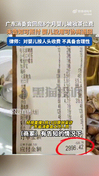 上海邦信阳(武汉)律师事务所罗胜律师也表示:“茶位费应在菜单、店内醒目位置公示或提前主动告知。未告知即可视作不合理收费,消费者有权拒绝支付。”他还补充,“即便商家尽到告知义务,对完全没有消费能力的婴儿按人头收费,仍属不合理行为。”另据黑猫投诉称,此事曝光后,商家立即联系了黄女士(化名),向其致歉,并按照市场价退还了餐费。